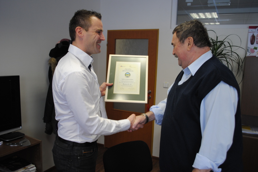 V kanceláři na nás čeká chlap jak hora. Správný řezník, který léta pracoval jako vedoucí Jednoty v Novém Jičíně, po roce 1989 zprivatizoval prodejnu. Se svými spolupracovníky využil možnosti dělat v ,,domácích podmínkách" drobnou výrobu uzenin.