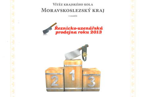 Po úspěších v letech 2011 a 2012 kdy naše prodejny ve Frýdku-Místku a Opavě získaly ocenění Řeznicko-uzenářská prodejna roku, se nám v letošním roce povedlo dosahnout ve sportovní terminologii " čistého hattricku". To znamená, že jsme dokázali třikrát v řadě za sebou zvítězit v této soutěži, kterou teprve čtvrtým rokem vyhlašuje a vyhodnocuje Svaz zpracovatelů masa.