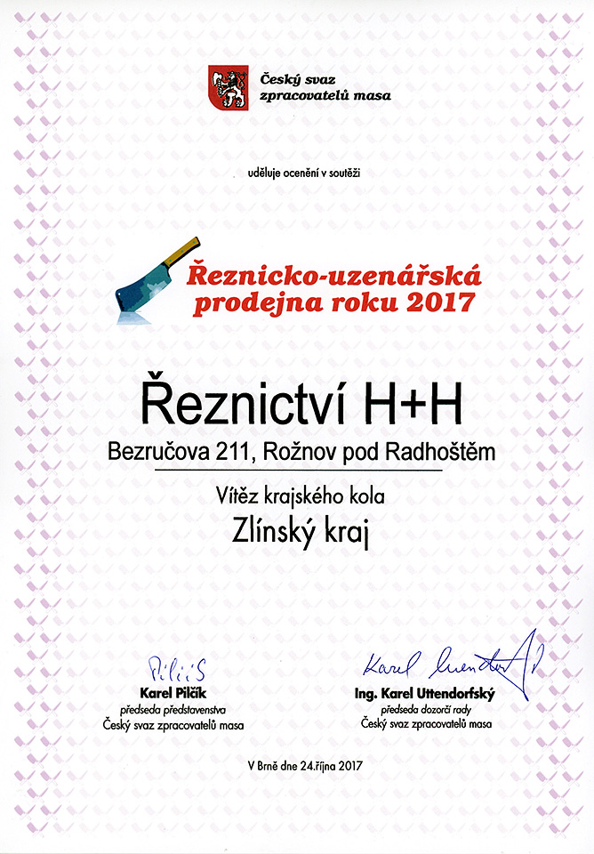 Jak se již stalo zvykem, také v roce 2017 jsme se přihlásili do soutěže o nejlepší Řeznicko-uzenářskou prodejnu roku. Již desátý ročník této soutěže vyhlásil Český svaz zpracovatelů masa a přihlásilo se do něj 49 prodejen ze všech krajů.