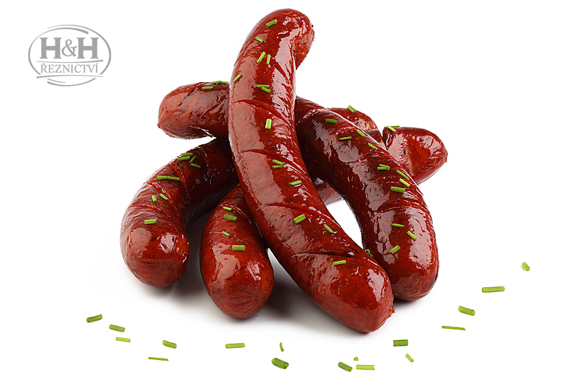 Vepřové maso (60%), vepřová bílkovina, vařené vepřové kůže, bramborový škrob, jedlá sůl s jodem (jedlá sůl, jodičnan draselný) konzervanty E250, E535, E202, stabilizátory E339, E450, E451, E452, glukózový sirup, kvasniční extrakt, cukr, extrakty koření, emulgátor E472c, zahušťovadla E1422, E407a, látky zvýrazňující chuť a vůni E621, E635, regulátor kyselosti E508, E260, anitoxidanty E301, E316, sušená zelenina, koření, jedlé střevo – vepřové.