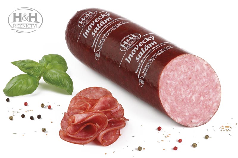 Vepřové maso (70%), vepřová bílkovina, vařené vepřové kůže, bramborový škrob, jedlá sůl s jodem (jedlá sůl, jodičnan draselný), koření česnek, konzervanty E250, E535, stabilizátory E450, E451, E452, E339, barvivo E120, E500, látky zvýrazňující chuť a vůni E621, E635, antioxidanty E301, E316, glukózový sirup, dextróza, extrakty koření, směs koření, regulátor kyselosti E508, zahušťovadlo E407a, sušená zelenina. Střevo není jedlé.