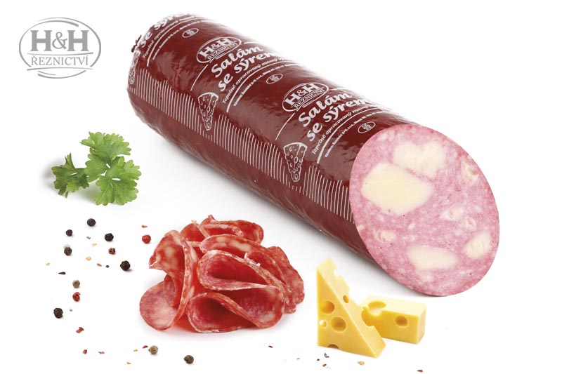 Vepřové maso (71%), sýr (20%) (mléko, jedlá sůl, jodičnan draselný, syřidlo, mlékárenská kultura), pitná voda, jedlá sůl s jodem (jedlá sůl, jodičnan draselný), dextróza, konzervanty E250, E535, E202, stabilizátory E450, E451, barvivo E120, antioxidanty E301, E316, látka zvýrazňující chuť a vůni E621, koření, regulátor kyselosti E330,E331. Střevo není jedlé.