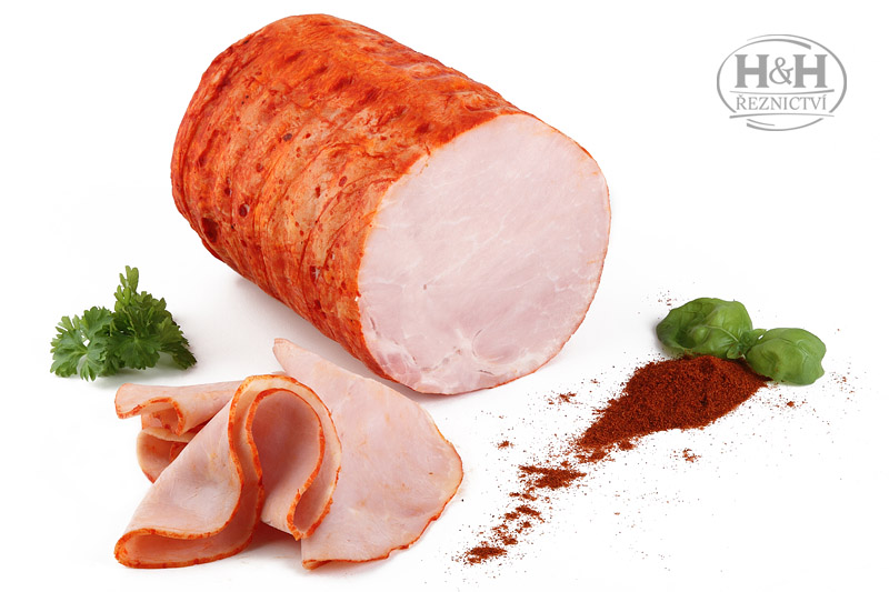 Vepřová kotleta (84%), voda, jedlá sůl s jodem (jedlá sůl, jodičnan draselný), konzervanty E250, E535, E260, E202, E211, antioxidant E316, E301, extrakty koření, aroma, stabilizátory E451, E452, živočišná bílkovina, cukr, rostlinná vláknina, emulgátor E472c, modifikovaný škrob E1422, barvivo E160C, zahušťovadla E407a, E418