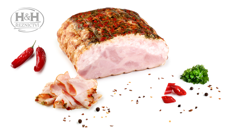 vepřové maso(bok), voda, suš.zelenina, dus.sůl, konzervant E 250, E 535, E 500, stabilizátor E 450,E 451, zahušťovadlo E 407, E 415, bramborový škrob, látka zvýrazňující chuť a vůni E 621
