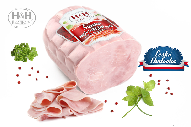 Vepřové maso (92%), voda, jedlá sůl s jodem (jedlá sůl, jodičnan draselný) konzervanty E250, E535, E330, stabilizátory E450, E451, antioxidant E301, zahušťovadlo E407a, glukozový sirup , cukr, kvasniční extrakt, extrakty koření, aroma.